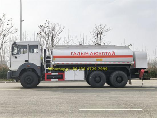 2 compartments, 2 fuel dispensers, stainless steel, aluminum alloy tanker is optionalThe Beiben 2638 mobile fuel bowser is a large-capacity mobile refueling unit based on a modified Beiben 6×4 truck chassis, specifically designed for fuel distribution and mobile refueling tasks. The vehicle features a Beiben NG80B extended cab, powered by a 380-horsepower Weichai engine, paired with a Fast 12-speed transmission and a 13-ton dual rear axle, providing reliable power and strong load-bearing capacity suitable for long-distance heavy-duty transport. The tank is constructed from 4mm carbon steel with a dual-compartment design, allowing for safe transportation of multiple fuels such as diesel and gasoline.