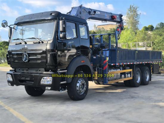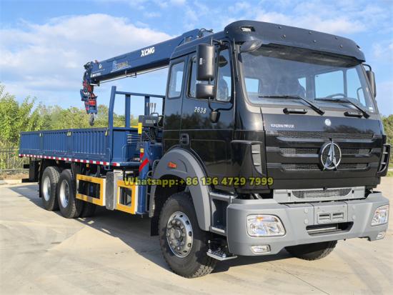 XCMG, palfinger/unic crane is optionalThe Beiben 2638 Truck-Mounted Hydraulic Crane is a professional engineering vehicle that combines efficient transportation with heavy-duty lifting functions. Powered by a WP10.380E32 engine delivering 380 horsepower, it is paired with a FAST 12-speed manual transmission and a 6x4 drive chassis, offering outstanding load-bearing capacity and adaptability to complex road conditions. The superstructure features the XCMG GSQS250-5 straight-arm crane, which provides a maximum lifting torque of 260 kN·m, achieves a lifting height of 20 meters, and offers 360-degree full rotation, meeting various on-site lifting requirements.