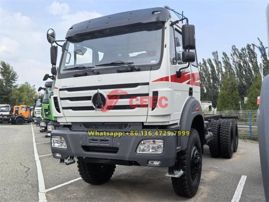 BeiBen 6×6 all-wheel-drive chassis is a heavy-duty off-road vehicle based on Mercedes-Benz technology. Equipped with a 420-horsepower engine and a specialized transfer case, it features high-mobility suspension and a robust frame. Its exceptional off-road capability, superior load-bearing capacity, and adaptability to high-temperature environments make it particularly suitable for extreme terrain operations in Africa, such as mineral development and engineering transportation.