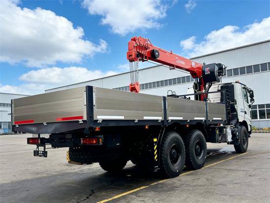 The Beiben 6×6 Stiff Boom Crane Truck is outfitted with an S2505 hexagonal telescopic boom crane, boasting a maximum lifting torque of 25 ton-meters, a working height of 21.4 meters, and a coverage radius of 18.6 meters. It comes with dual-stage telescopic front outriggers. Its hydraulic system utilizes imported multi-valve blocks and piston pumps, enabling precise combined movements and efficient energy conversion. Combined with the 18.6-meter boom length and a single crane design, it is particularly suited for lifting tasks in confined spaces. Overall, the vehicle strikes a balance between off-road maneuverability and on-site operational efficiency.